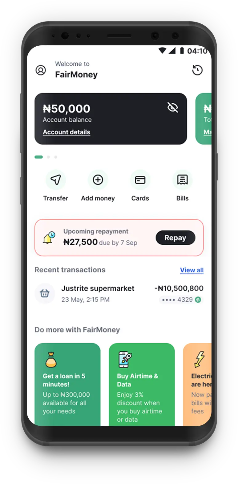 Learn MoreFairMoney offers you high savings interests, discounts on airtime/data, no charges on bills, and much more!